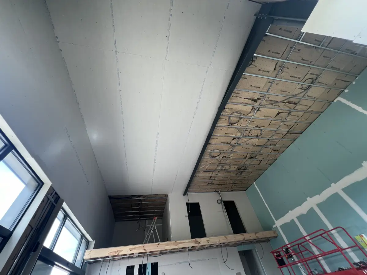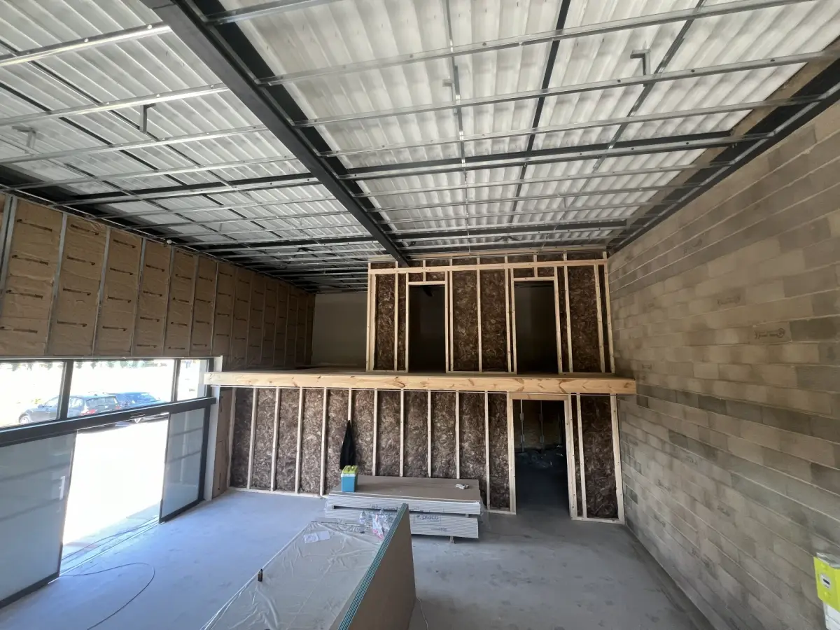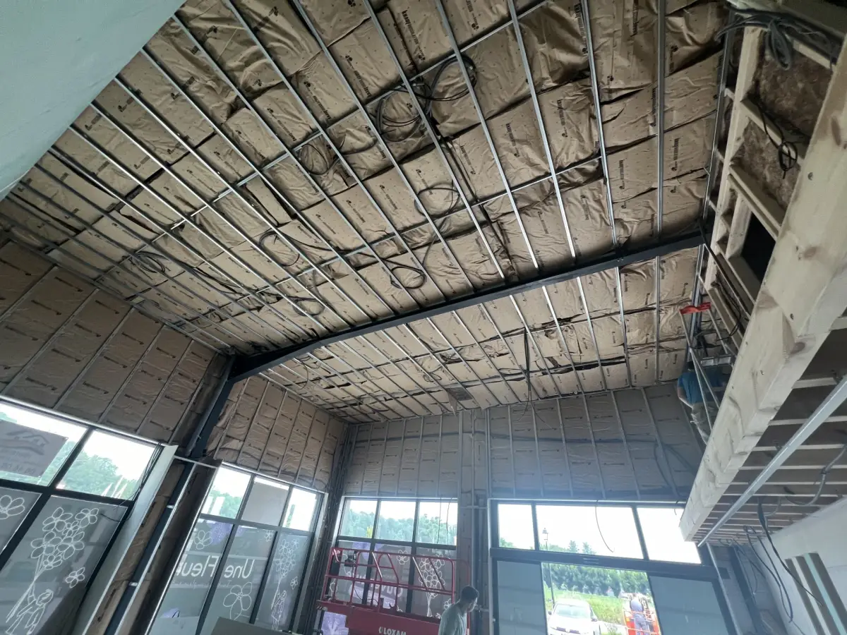 - Pose de structures métalliques au plafond et sur les murs extérieurs